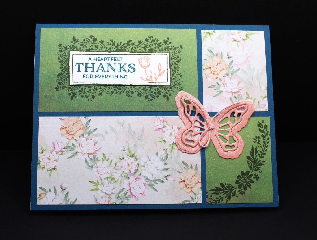 Other than this experience, Teri’s favorite memory is when she was moving her military family to Hawaii and knew they’d be in a hotel for up to two months. Since she couldn’t bring all of her craft supplies and it would be distressing to abstain from crafting for that long (even in Hawaii), she gathered a handful of kits and added a few other supplies as a portable and compact craft experience. Teri put different card bases, pretty paper and some stamps in a pink shoe box sized container. The whole experience was delightful and a highlight of living in Hawaii was making cards in the hotel from the kit she assembled.