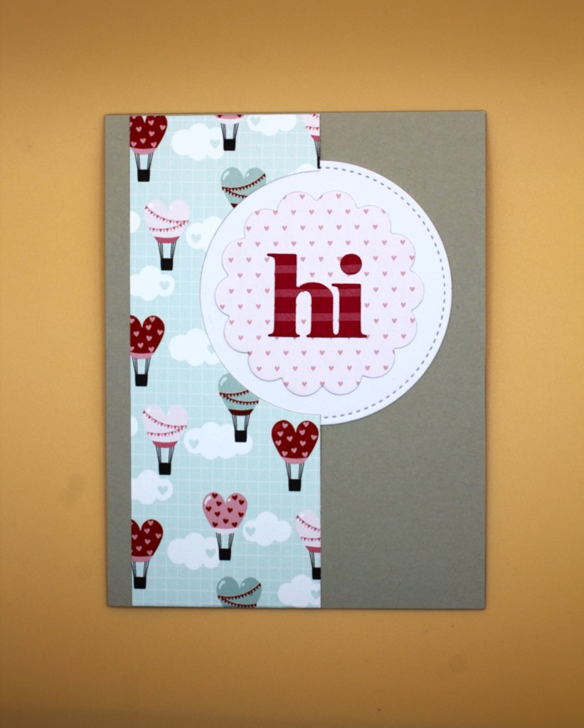 This quick and simple, yet sweet card using a 2 inch strip of Echo Park Love Notes 6X6 paper. And a couple of circle dies and punches. It came together really fast but is still really cute!